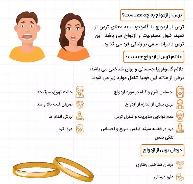 • ترس از تغییر: ازدواج یک تغییر بزرگ در زندگی است. برخی افراد از تغییرات ناشی از ازدواج، مانند از دست دادن استقلال یا مسئولیت‌های جدید، هراس دارند.